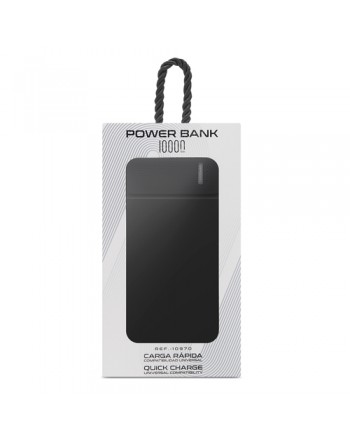 Power bank 10.000 mAh, incluye cable de carga micro USB.