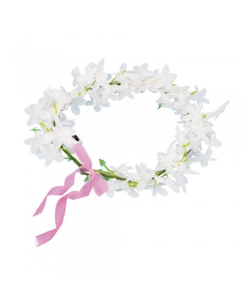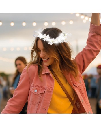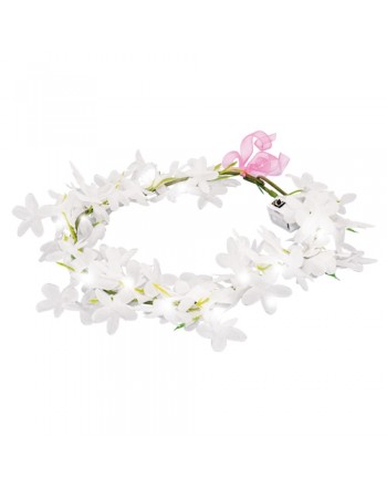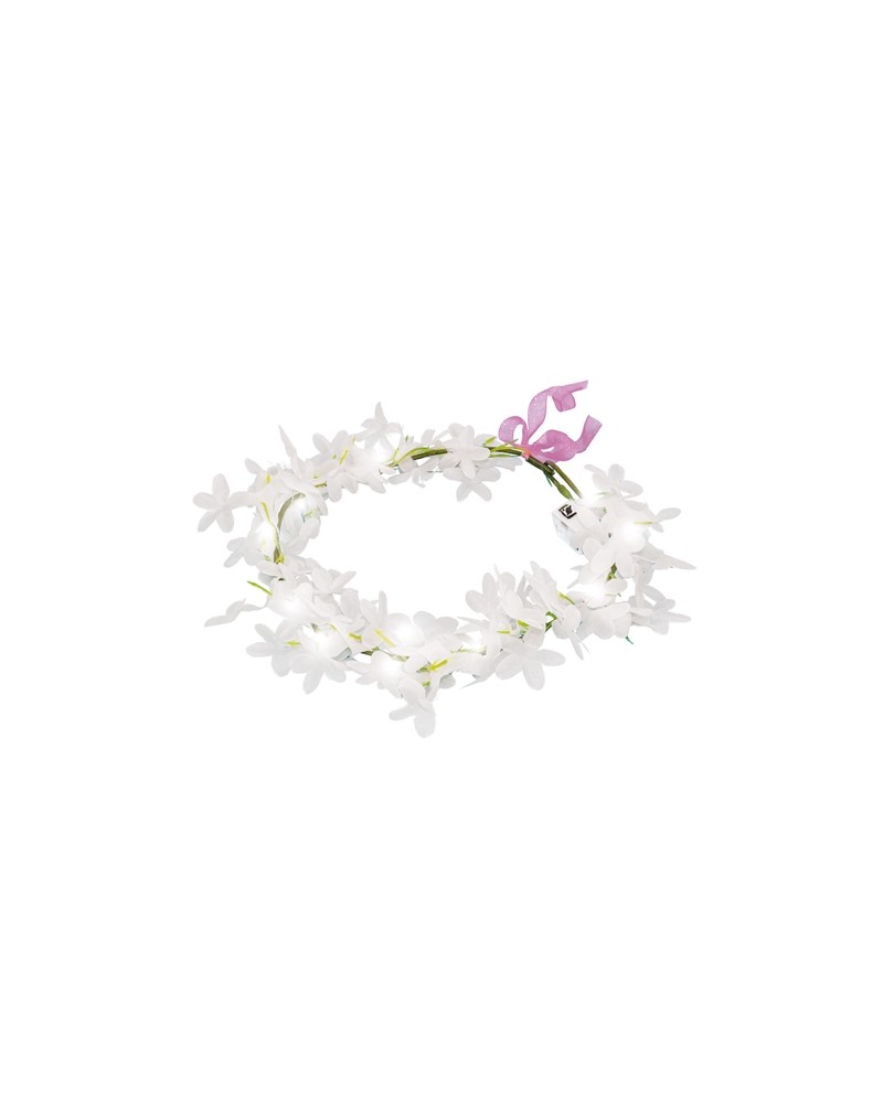 Diadema con luces LED, hecha de material poliéster y flores artificiales.