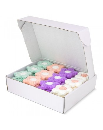 Cada toalla en cajita de presentación individual (medida 7x7x5 cm)