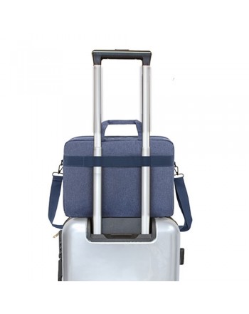Incluye un bolsillo amplio delantero con cremallera y sujeción elástica para llevar en un trolley, además puedes llevarlo como maletín o bandolera.