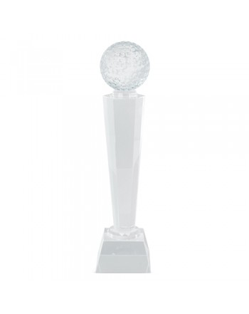 Trofeos de cristal deportivos disponible en varios modelos; pelota de tenis (ref. 10841), balón de fútbol (ref. 10838), pelota de golf (ref. 10840) y balón de baloncesto (ref. 10839)Cada trofeo presentado en caja de presentación individual.